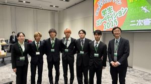 2025年12月16日に東京で行われた二次審査会には朝9時から「アイデア部門」10作品および「デザイン部門」6作品の順番が発表され、各チームが12分程度の発表と質疑応答が行われました。「デザイン部門」の中に、大学生が構成されたチームは畿央大学チームだけで、他の5チームは大学院生のいるチームでした。それにもかかわらず、学生たちは健闘して、堂々と作品を発表しました。