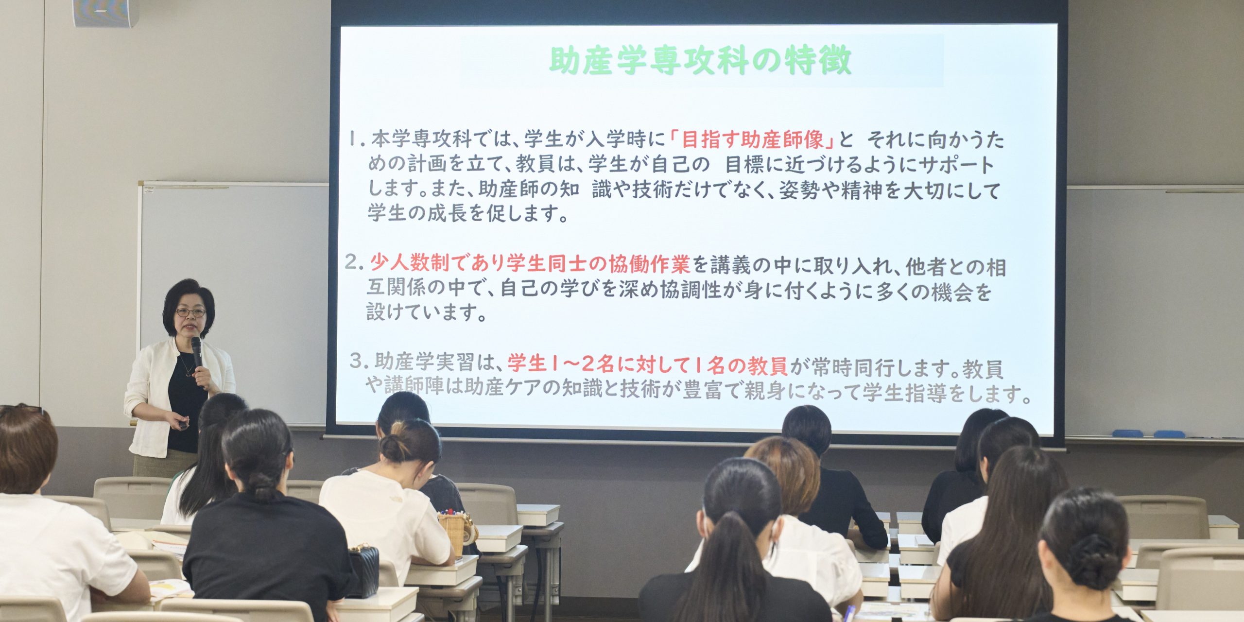 学科の魅力や取得できる資格、特色ある授業科目、卒業後の進路などについて、各学科の教員が詳しく説明します。