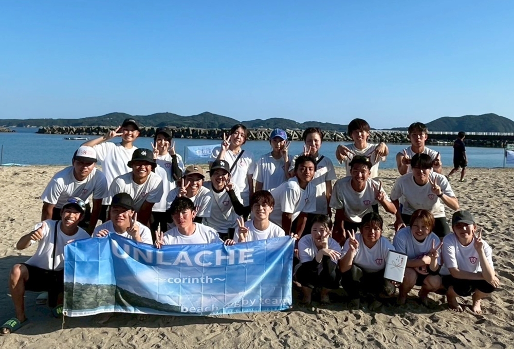 こんにちは!ビーチラグビー部の代表の村岸勇飛と副代表の福田晃杜(人間環境デザイン学科 3回生)です。私たちは2025年9月6日~7日に行われた伊勢志摩ビーチラグビーフェスタ2025 にUnlache コリント、Unlacheイオニア、Unlacheドーリアの3チームに分かれて総勢23名で参加してきました!