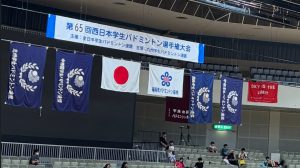西日本学生バドミントン選手権大会は、結果が各大学のランキングに関わるだけでなく、インカレの出場者が決まる、とても大事で大きな大会です。勉強の合間を縫って練習を重ねてきた私たちも、他大学の選手たちの試合に懸ける熱意に圧倒されましたが、とても良い刺激を受けました