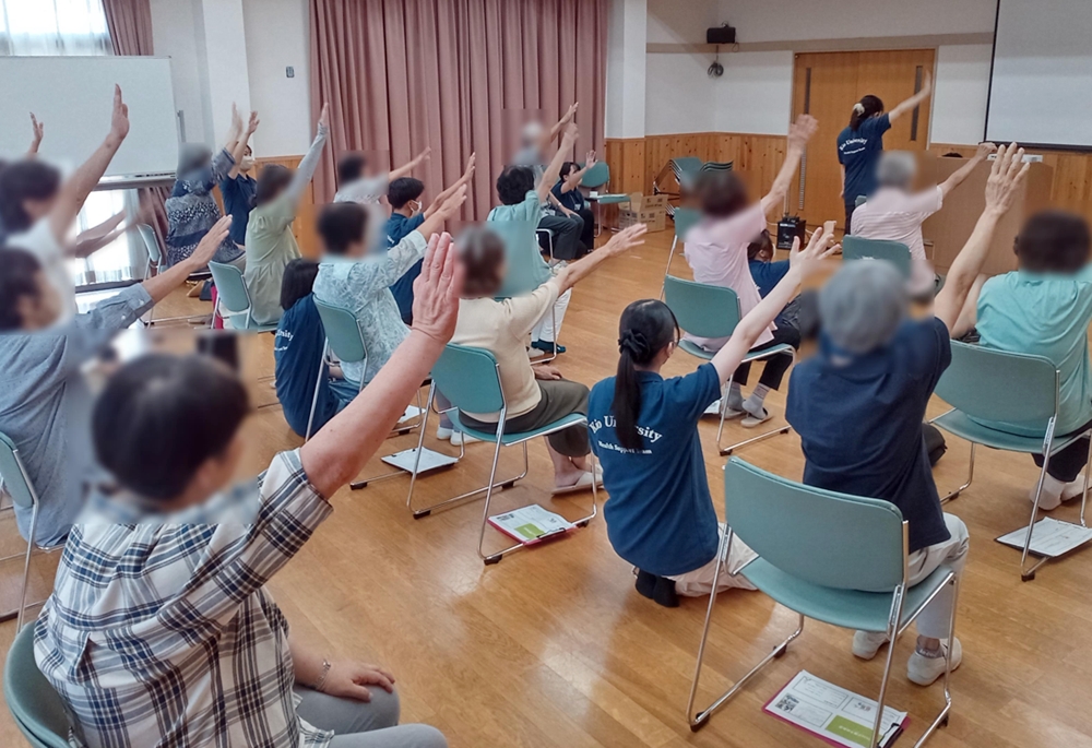 当日は70代の方から90代の方まで合計18名の方にご参加いただき、体力測定では楽しみながら少しでも良い結果が出るように皆さん頑張ってくださっていました。そして、自身の健康状態に対して意識を向けるきっかけになっていたと感じました。また、学生からフィードバックを行ったり、健康に関する相談、茶話会などを通して学生と参加者の方と交流を深めたりすることができました。