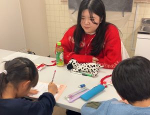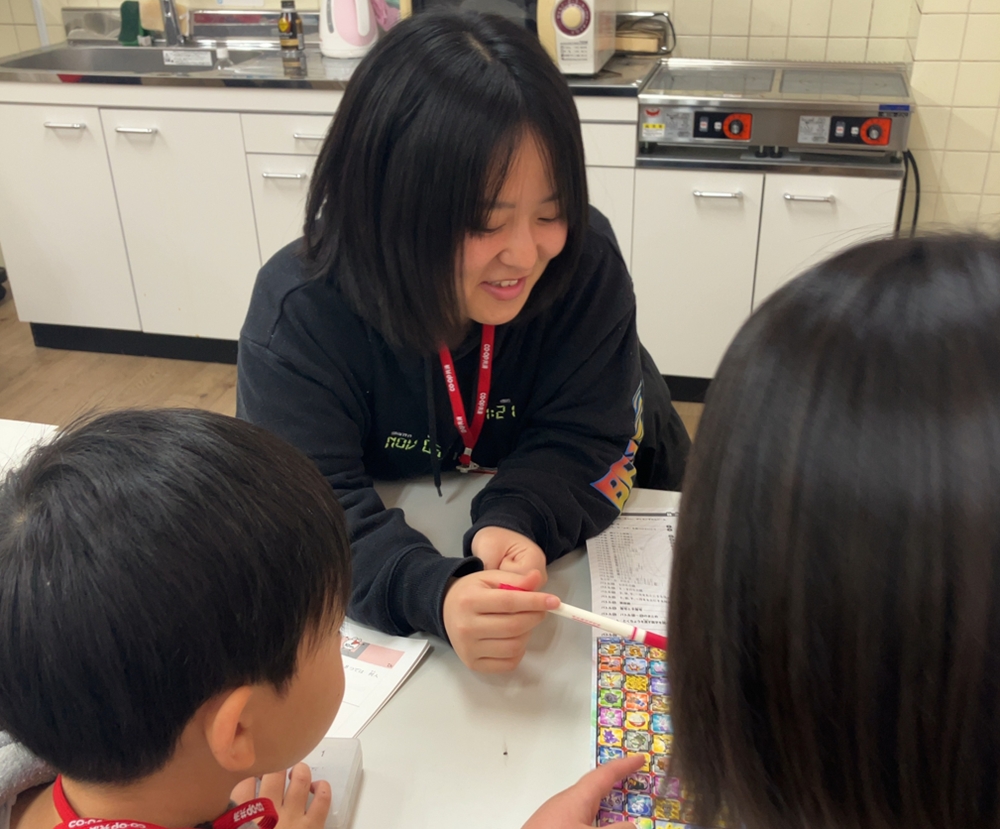 「子ども寺子屋に始めての参加で緊張しましたが、子どもたちの明るく元気なふるまいを見て、私も楽しく取り組むことができました。」