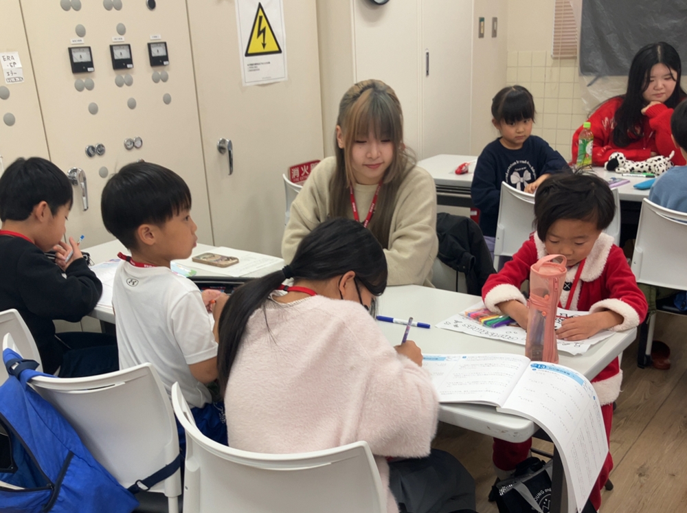 2025年12月19日(金)、本年度第6回目となる「こども寺子屋」がならコープ  真美ケ丘店で実施されました。「こども寺子屋」は、畿央大学とならコープ真美ケ丘店との連携事業です。「子どもの居場所づくり」「保護者の負担軽減」を目的とした取り組みの一環として企画されました。近隣の皆さんにご好評いただき、定期的に開催しています。