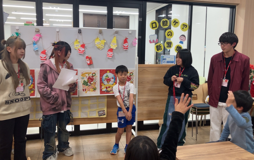 レクリエーションの時間には、店舗1階のイートインで「クリスマスイベント」が開催され、畿央大学生の考えたジャスチャーゲームやクイズ大会で大いに盛り上がりました。