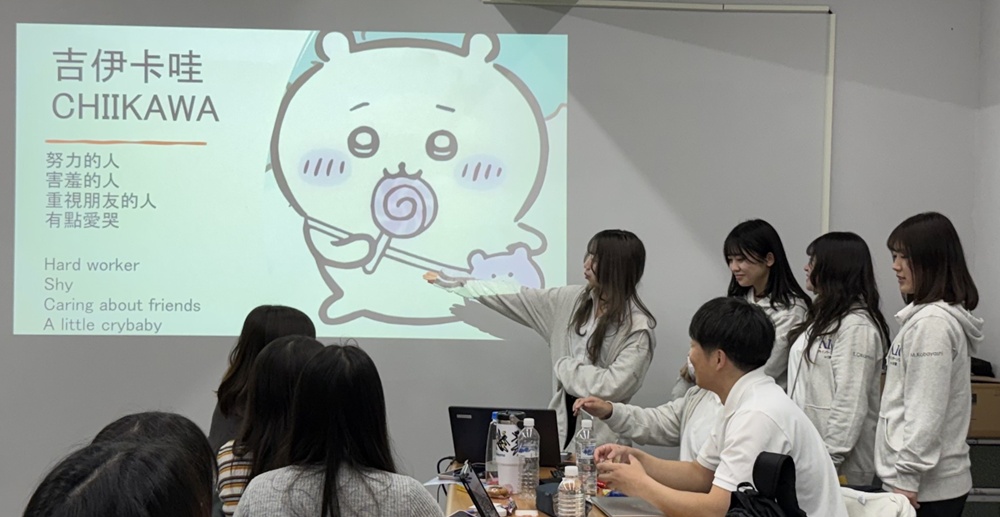 その後、私たちはサンリオ、ちいかわ、ドラえもんのクイズや絵描き歌を取り入れ、日本のキャラクターを紹介しました。また、席が近い中国医薬大学の学生とお互いのグッズを見せ合いながら交流したことで会話が弾み、自然と仲を深めることができました。