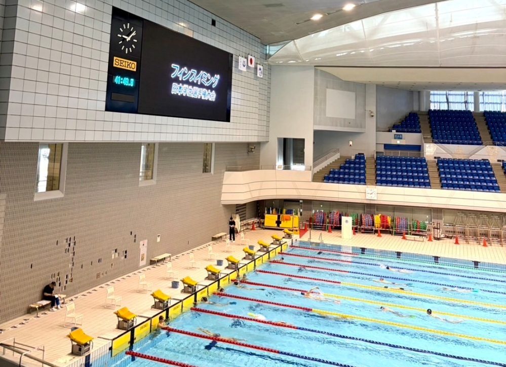 こんにちは!看護医療学科 4回生 水泳部主将の上野 心優です。2026年3月22日(日)、第22回フィンスイミング日本学生選手権大会が千葉国際総合水泳場で開催され、本学からは看護医療学科2回生 の横尾 陽斗と私の2名で出場しました。