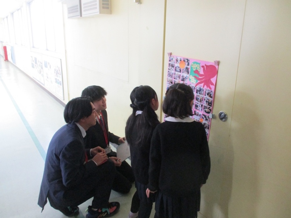 - 班での活動も、言葉のキャッチボールが非常に上手く、自分が小学校6年生の頃、これほど充実した会話ができていたのだろうかと思えるほど衝撃を受けました。先生に立ち歩いて見てもらってもいいように許可をもらい、見て一番印象にのこっているのは、「未来」の授業でマンダラチャートを用いてポスターを作成している児童を見たことです。マンダラチャートは、中心に重要なテーマをおき、そこから周りに関連するものを書いていくというもので、それを踏まえたポスターの完成度がすごく良く、驚きを隠せませんでした。「どうしてこう考えたの?」という自分の質問にも、端的でかつ、わかりやすく答え返してくれたので、すべてを踏まえて、本学校の教えが非常によいものだということに気づかされました。改めて、教師の偉大さに気づくことができて本当によかったです。