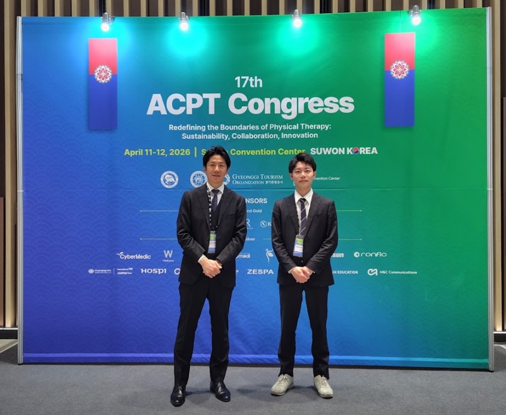 2026年4月11日(土)、12日(日)に韓国のSuwon Convention Centerで17th Asian Confederation of Physical Therapy (ACPT) 2026 Congressが開催されました。地域リハビリテーション研究室から私、健康科学研究科 博士後期課程2年の池本 大輝と松本 大輔准教授が参加し、研究発表を行いました。