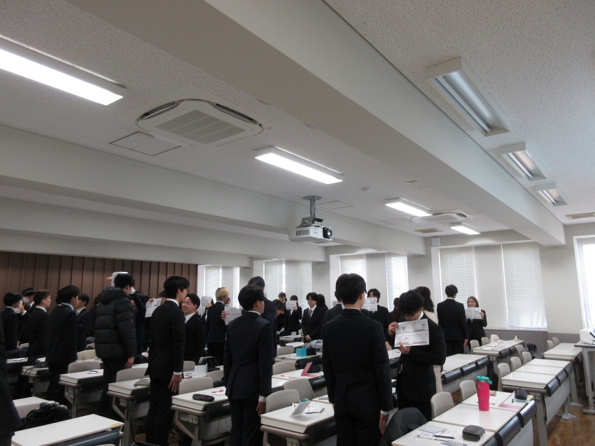 2025年12月4日(木)、臨地実習を控えた理学療法学科3回生を対象に、接遇マナーや一般常識を学ぶ「医療接遇マナー講座」を実施しました。講師として、CAREER LABOの福井講師をお招きし、実践も交えながら90分間集中して学びを深めました。