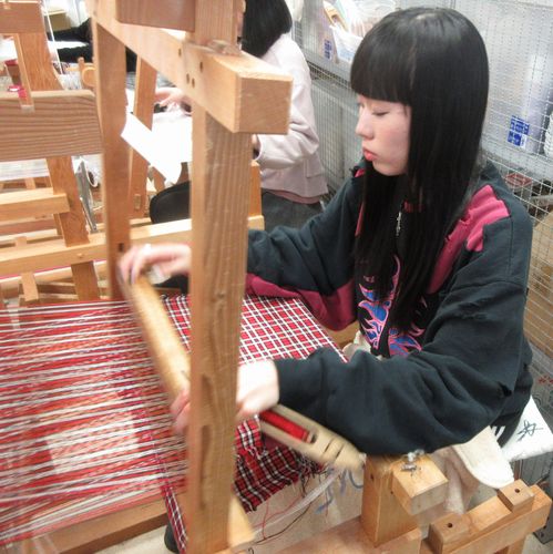 機織り機で制作中