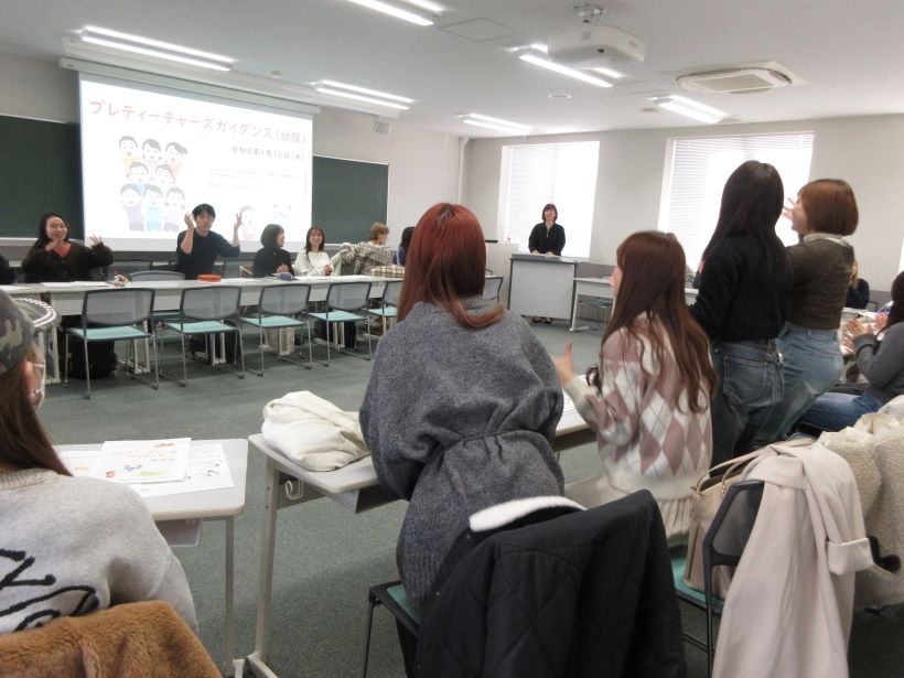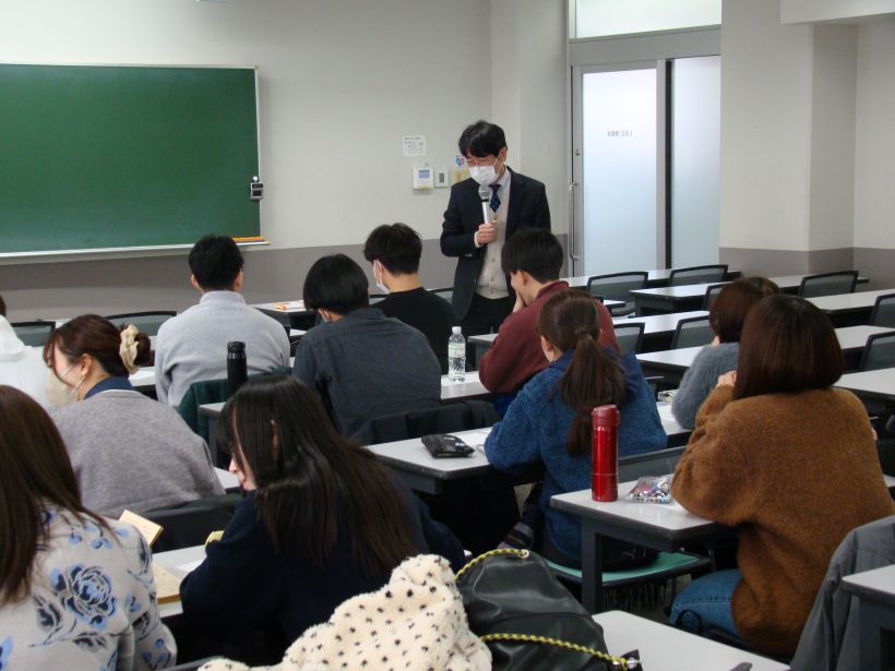学校教員志望者は、コンプライアンスや服務、学級経営のポイント、板書や掲示物作成などについて学びました。また、幼保志望者は保育者としての心構えや子どもを取り巻く環境への関わりなどについて学びました。