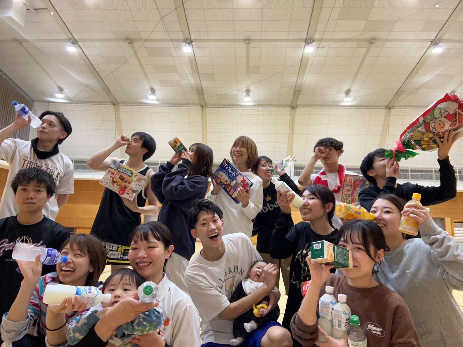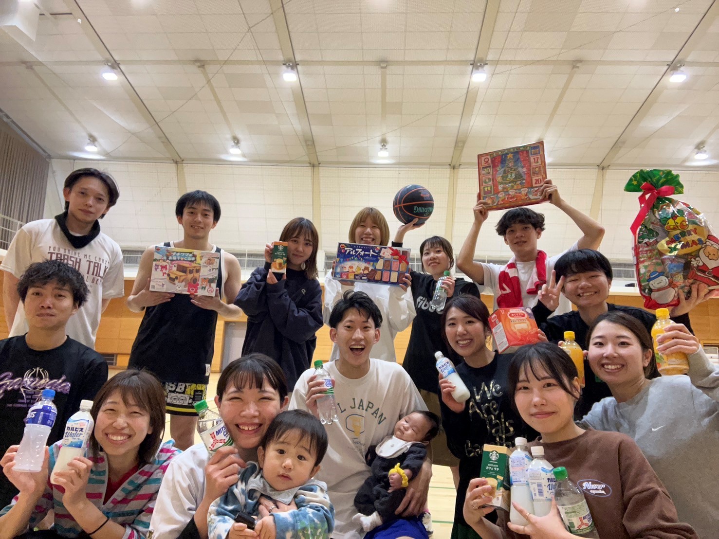 最後3戦はチーム分けをして商品をかけた戦いを行いました。大学生の頃は一緒にわちゃわちゃ楽しくバスケットボールをしていた仲間でしたが、お母さん・お父さんになっている卒業生が、お子ちゃんを気にかけながらバスケットボールをしている姿を見て、感極まりました。