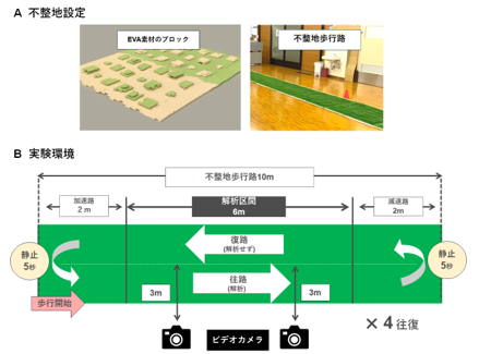 ■健常者と脳卒中者の不整地歩行中の距離に応じた変化の特徴の違いを自作の不整地路を用いて評価しました.
