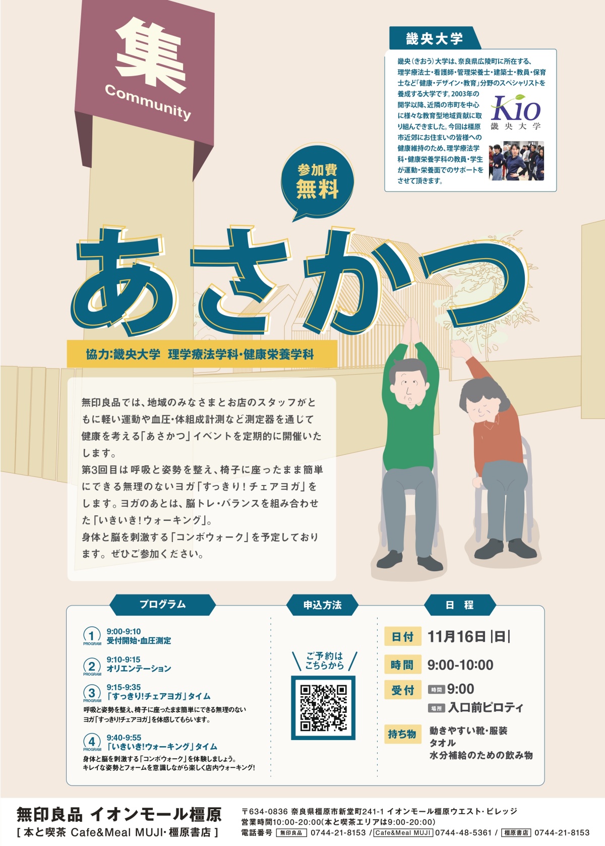 無印良品イオンモール橿原「あさかつ」に理学療法学科・健康栄養学科の学生が協力しました。