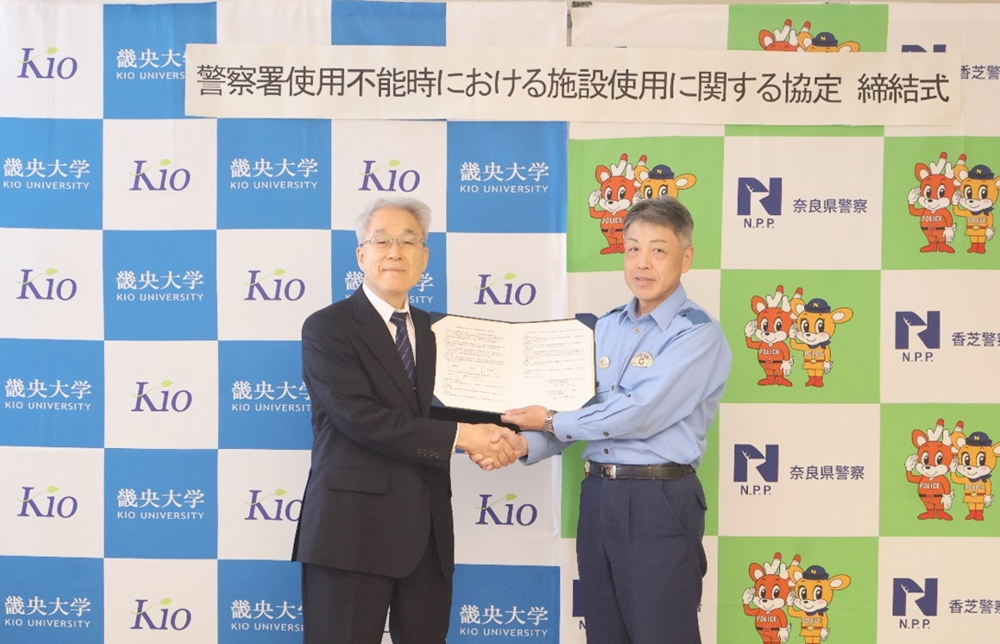 畿央大学はこのたび、香芝警察署と「警察署使用不能時における施設使用に関する協定」を締結しました。